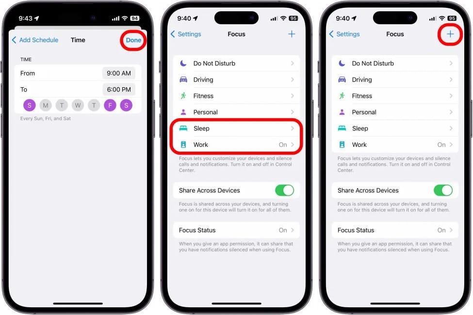 Bước 9: Và bây giờ bạn đã thiết lập chế độ tập trung đầu tiên của mình! Bây giờ, hãy quay lại cài đặt Tập trung và thiết lập Làm việc và Ngủ dựa trên lịch trình của riêng bạn, mỗi lịch trình đều có hình nền riêng. Chỉ cần lặp lại các bước trên cho từng chế độ Tập trung mà bạn muốn tùy chỉnh, chọn thời gian và ngày trong tuần mà bạn muốn kích hoạt các chế độ này.