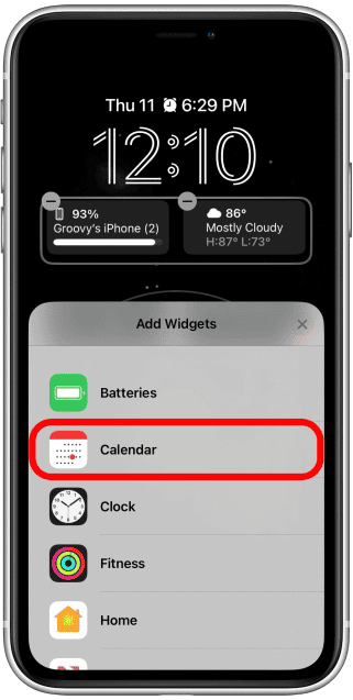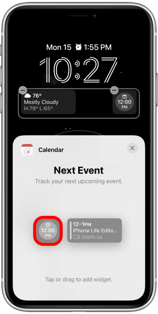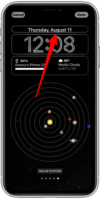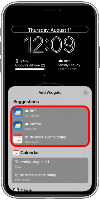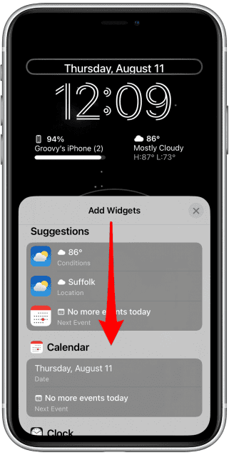 4. Nhấn vào một trong hai khu vực mà bạn có thể thêm tiện ích con. Mình sẽ bắt đầu bằng cách nhấn vào ngày.