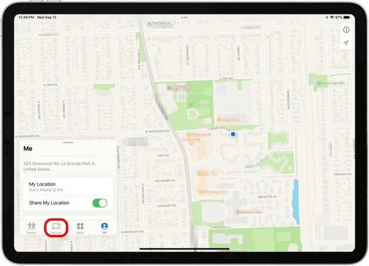 2. Một bản đồ sẽ bật lên với danh sách các thiết bị hỗ trợ Tìm của tôi. Chọn iPhone của bạn từ danh sách.