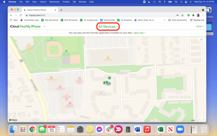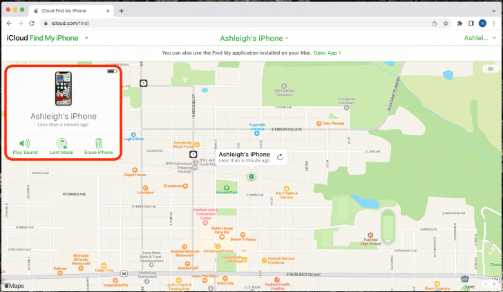 Nếu bạn có ứng dụng Tìm trên máy Mac của mình (ứng dụng này phải được cài đặt theo mặc định), mình thực sự khuyên bạn nên chuyển sang ứng dụng này thay vì sử dụng trình duyệt. Điều này là do tùy chọn iCloud chỉ cung cấp chức năng hạn chế: trong khi tùy chọn này vẫn cho phép bạn xem vị trí cuối cùng trên bản đồ, bạn không thể nhận chỉ đường từng bước đến thiết bị bị mất của mình.