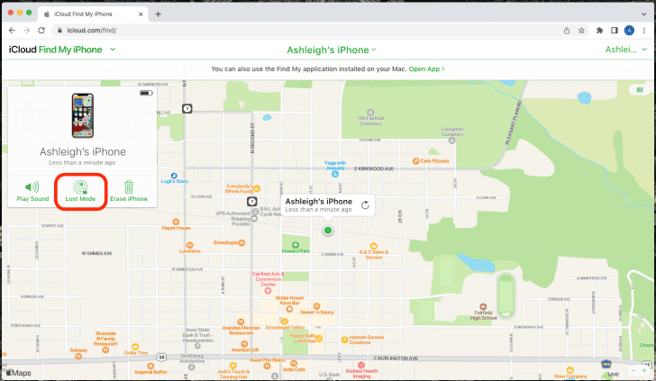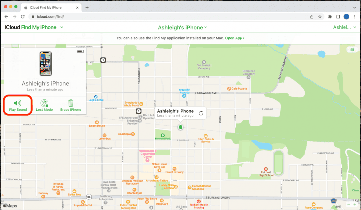 Tuy nhiên, nếu bạn chỉ muốn ping iPhone ở gần hoặc đặt nó ở Chế độ mất để bảo vệ dữ liệu của mình, thì đây là cách sử dụng Tìm trên iCloud.com: