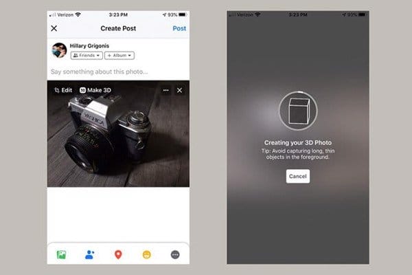 Hiện tại trên ứng dụng Facebook bạn có thể xem ảnh 3D bằng bất kì thiết bị nào, tuy nhiên chỉ với những thiết bị có camera kép thì khi đăng ảnh lên Facebook, Facebook sẽ cho bạn thêm một tùy chọn để biến ảnh chụp đó thành ảnh 3D.