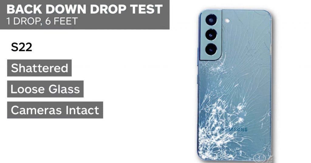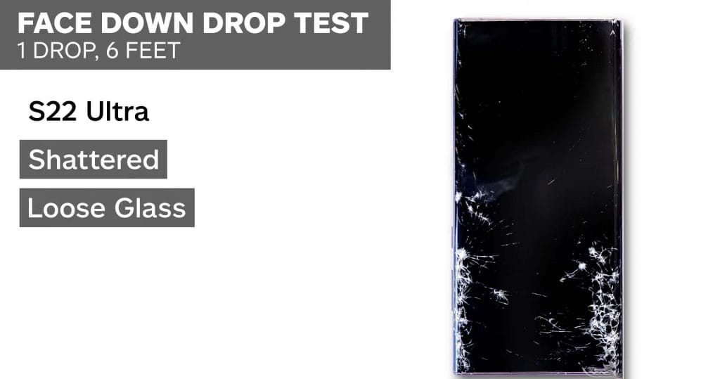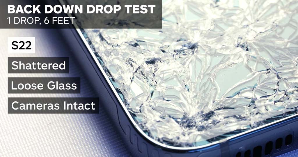 Với bài kiểm tra thả rơi tự do ở độ cao 6 feet, cả 3 chiếc điện thoại thuộc dòng Samsung Galaxy S22 series đều bị vỡ nát màn hình ngay từ lần thả rơi đầu tiên.Bên cạnh đó, hai trong số ba màn hình không thể sử dụng được do mức độ hư hỏng nghiêm trọng. Riêng thiết bị thấp nhất Samsung Galaxy S22 còn sử dụng được màn hình nhưng ở các góc vẫn có những hư hỏng đáng kể.