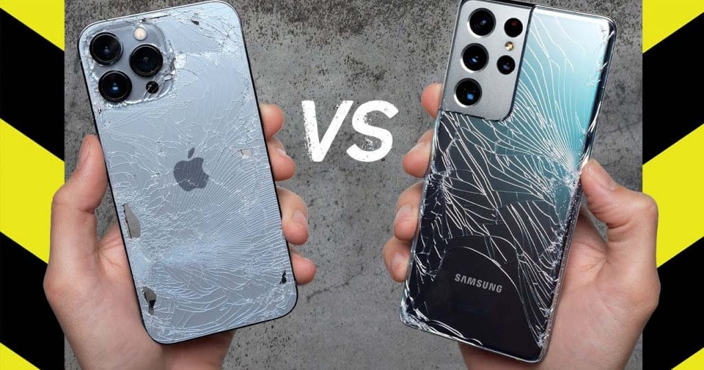 Samsung Galaxy S22 series sử dụng kính Gorilla Glass Victus +, thêm nữa, S22 Ultra sở hữu màn hình cong nên mang đến nhiều hư hỏng hơn so với iPhone 13 series của Apple. Còn đối với, iPhone 13 series, Apple đã không nói quá khi cho rằng kính Ceramic Shield bền hơn các loại kính khác. Nhìn chung iPhone 13 bền hơn đáng kể so với Galaxy S22 trong bài kiểm tra.