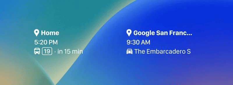 Phiên bản 6.40 của Google Maps bổ sung các tiện ích con cho Tìm kiếm và Chuyến đi Thường xuyên, với tiện ích con hiển thị vị trí, thời gian đến dự kiến và điều kiện giao thông: