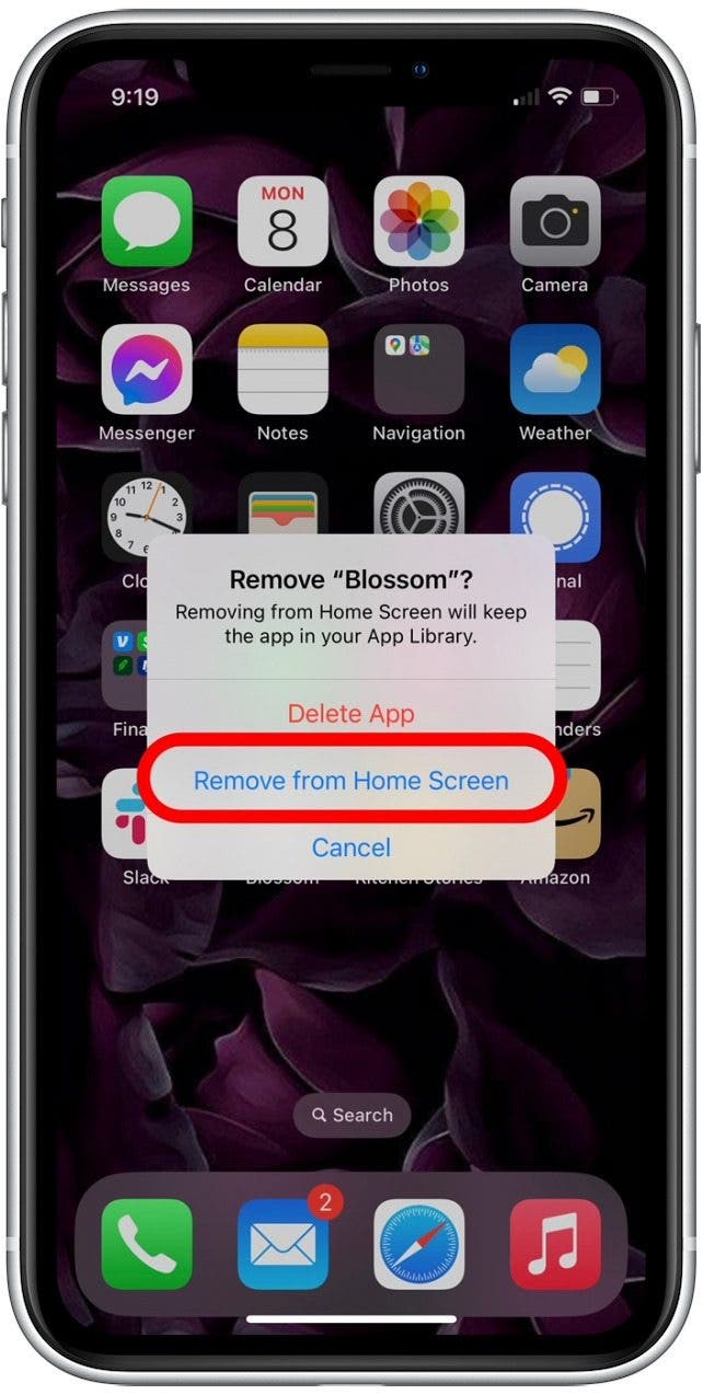 3. Nhấn Xóa khỏi Màn hình chính. Thao tác này sẽ xóa biểu tượng ứng dụng khỏi Màn hình chính nhưng giữ biểu tượng đó được lưu trữ an toàn trong Thư viện ứng dụng của bạn.