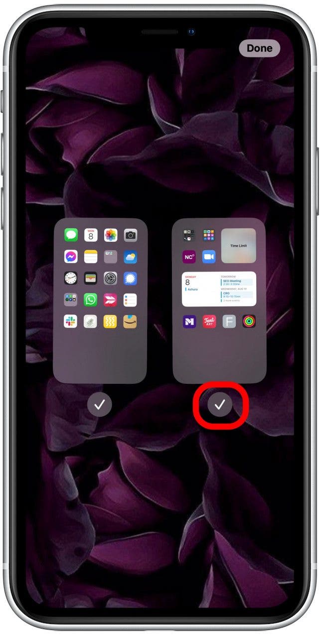 2. Bạn sẽ thấy chế độ xem toàn cảnh các trang trên Màn hình chính của mình. Để ẩn một trang khỏi chế độ xem, hãy nhấn vào dấu kiểm bên dưới trang để xóa trang đó.