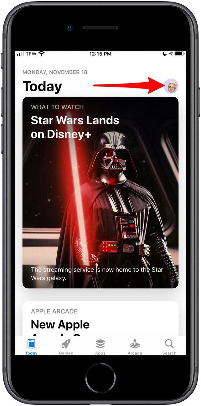 1. Mở ứng dụng App Store và nhấn vào biểu tượng hồ sơ của bạn ở góc trên bên phải.