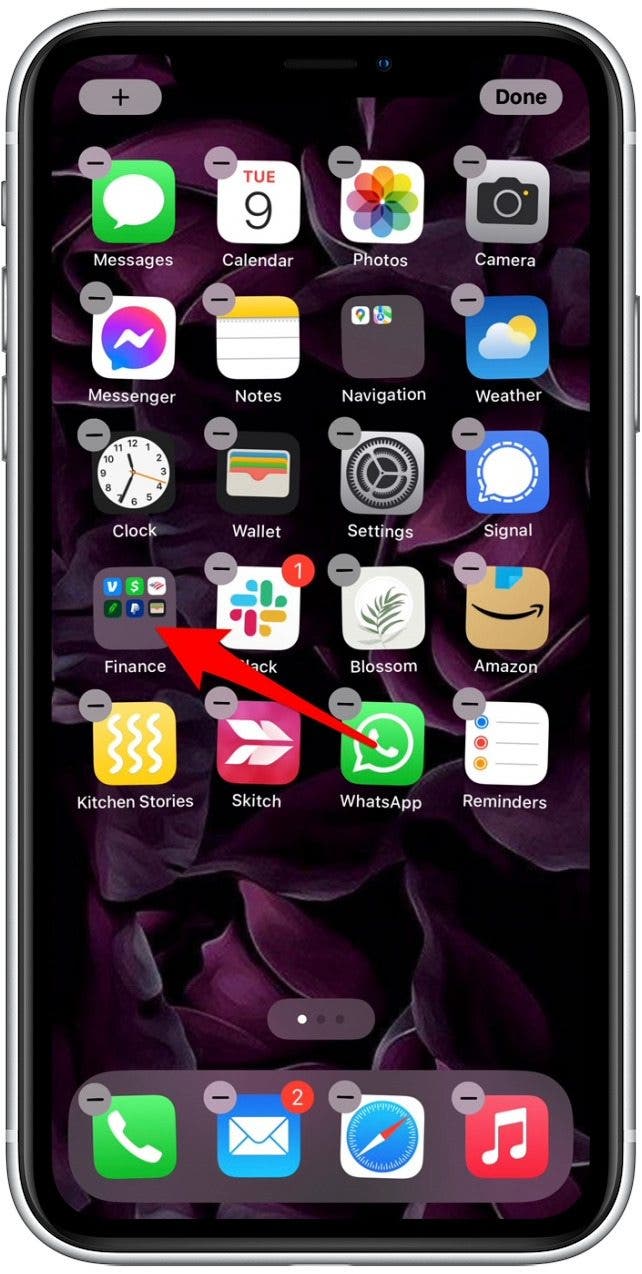 2. Nhấn và giữ bất kỳ đâu trên Màn hình chính của bạn để vào chế độ chỉnh sửa. Sau đó, kéo ứng dụng vào thư mục bạn chọn.