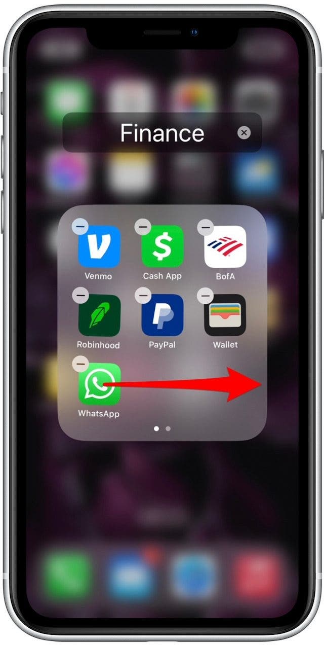 3. Nhấn để mở thư mục, sau đó kéo ứng dụng sang phải để bạn có thể đặt ứng dụng đó trên trang thứ hai của thư mục (chỉ những ứng dụng trên trang đầu tiên của thư mục mới hiển thị trên Màn hình chính).