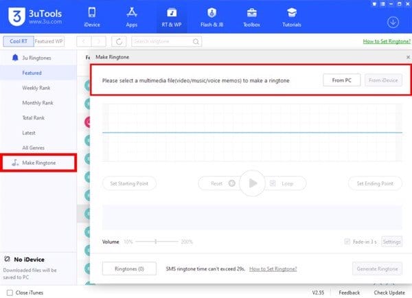 Còn nếu bạn muốn tự tạo một bản nhạc chuông cho riêng mình, hãy nhấp vào công cụ Make Ringtone, sau đó bắt đầu quá trình chỉnh sửa của mình.