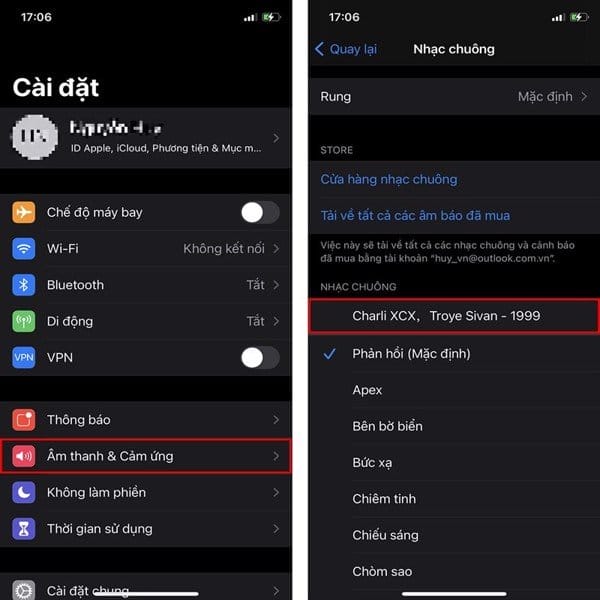 Bước 5. Trên iPhone, bạn vào Cài đặt > Âm thanh & Cảm ứng > Nhạc chuông và chọn bản nhạc chuông đã tải là xong.