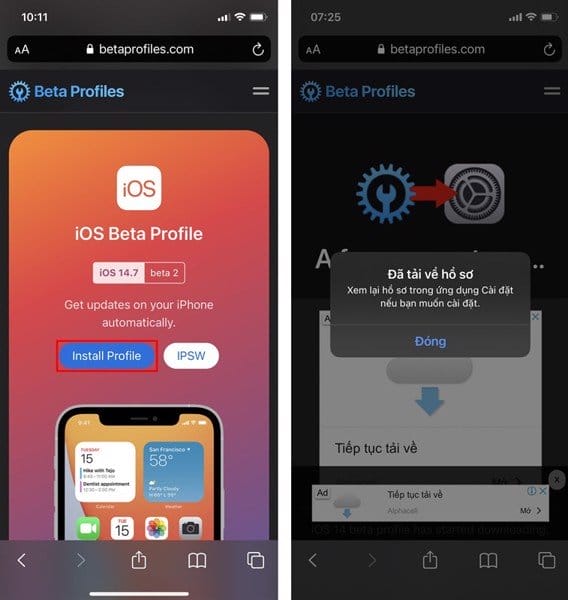 Bước 1. Bạn truy cập vào trang Beta Profiles theo link bên dưới, chọn Install Profile phiên bản iOS 14.7 Beta 2.
