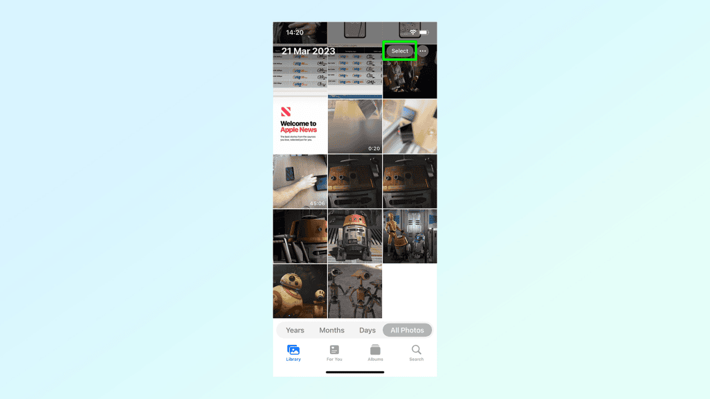 Điều đầu tiên bạn cần làm là vào ứng dụng Apple Photos và chọn tất cả các hình ảnh bạn muốn chỉnh sửa. Thực hiện việc này bằng cách nhấn vào tùy chọn Chọn ở trên cùng bên phải và nhấn vào từng hình thu nhỏ của hình ảnh có liên quan.