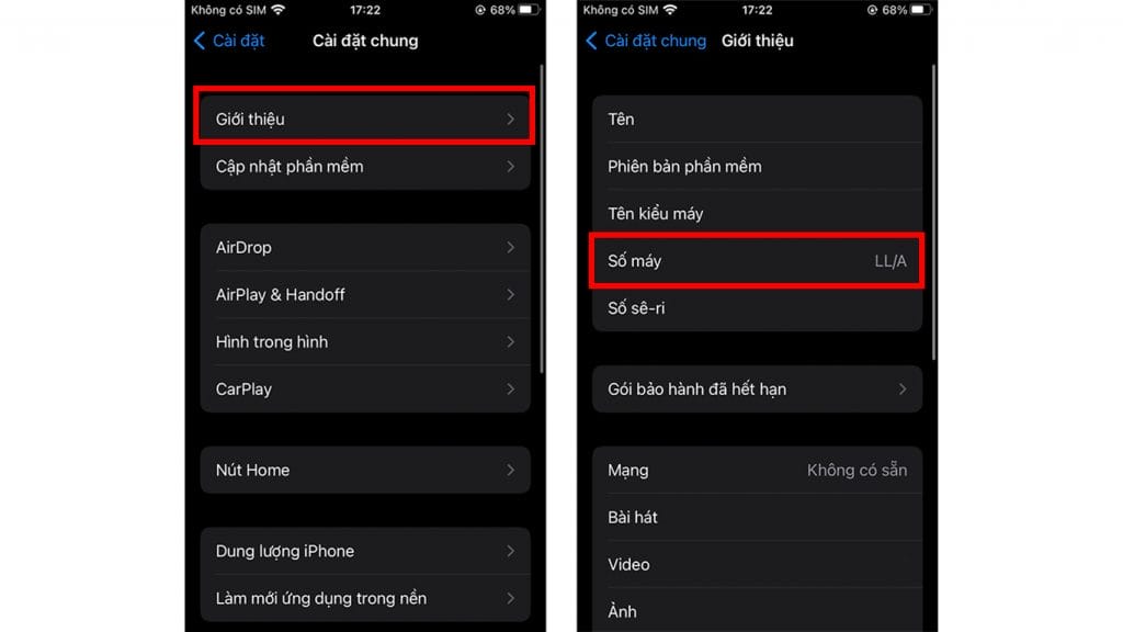 Bước 1: Bạn truy cập vào Cài đặt > Cài đặt chung > Giới thiệu > Số máy.
