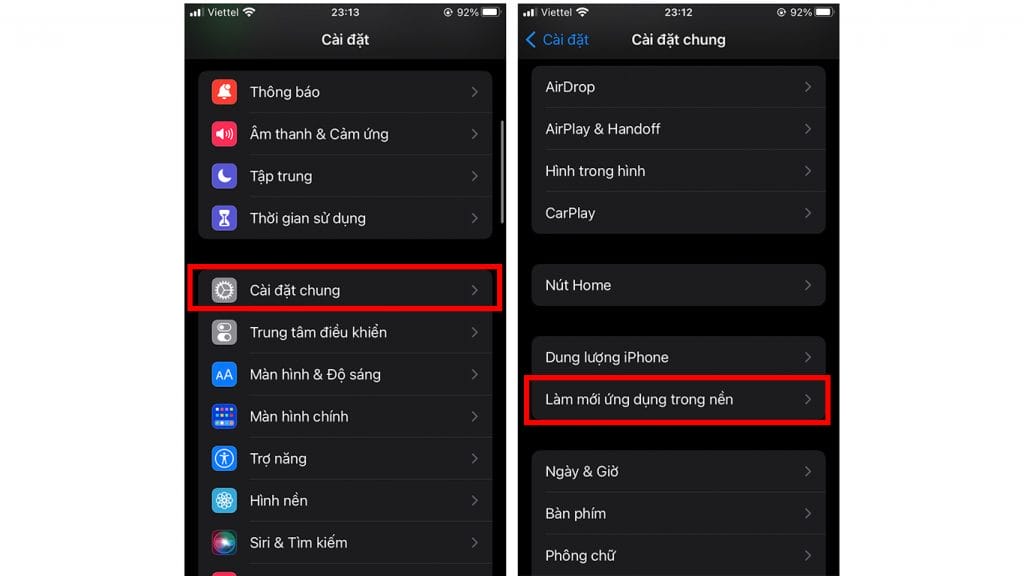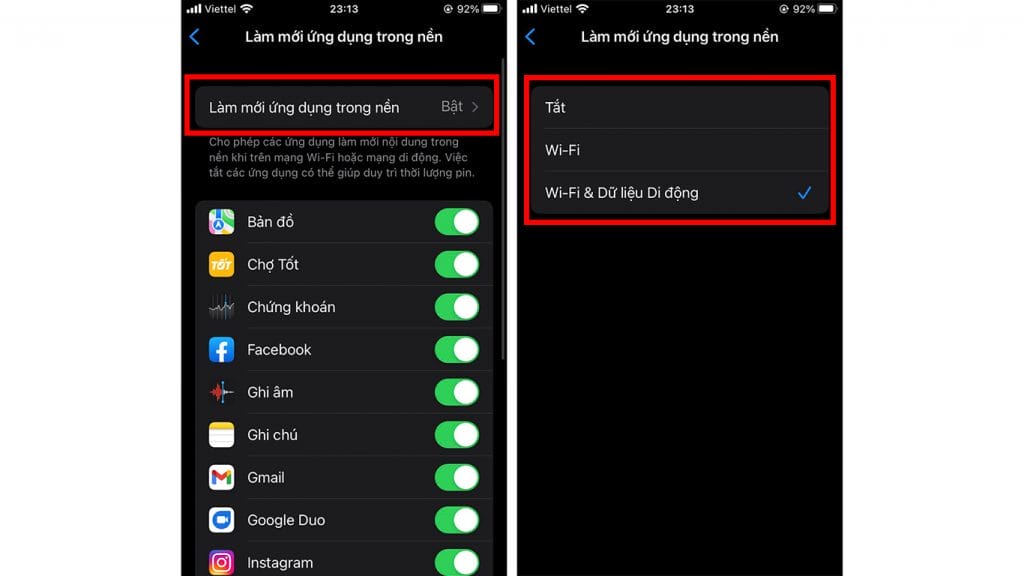 1. Tắt tính năng làm mới ứng dụng trong nền