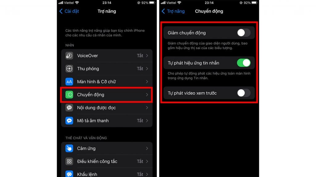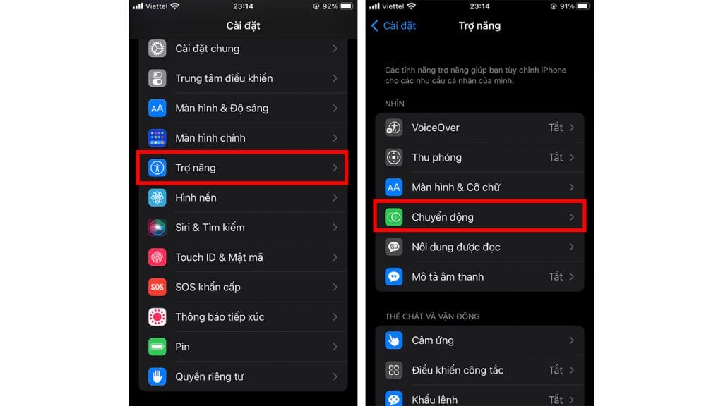 Bước 1: Để tắt tính năng này bạn truy cập vào mục Cài đặt > Trợ năng > Chuyển động.