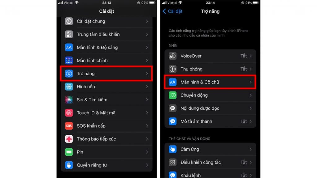 Bước 1: Đầu tiên, bạn truy cập vào Cài đặt > Trợ năng > Màn hình.