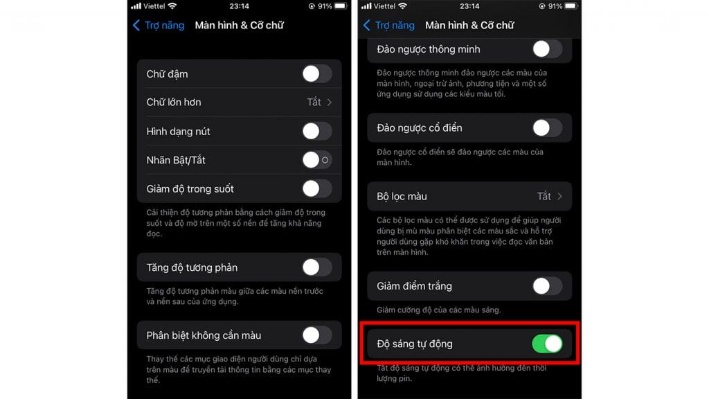Bước 2: Sau đó, bạn chọn vào mục Độ sáng tự động và tắt đi tính năng này.