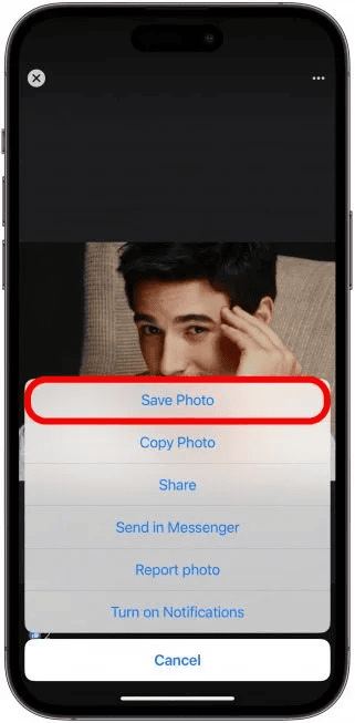 1. Nhấn và chọn hình ảnh hoặc URL của hình ảnh bạn đang điều tra và lưu hoặc sao chép nó. Đối với ví dụ này mình sẽ lưu một hình ảnh vào Ảnh.
