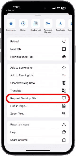 5. Cuộn xuống và nhấn vào Yêu cầu Trang web dành cho Máy tính để bàn.