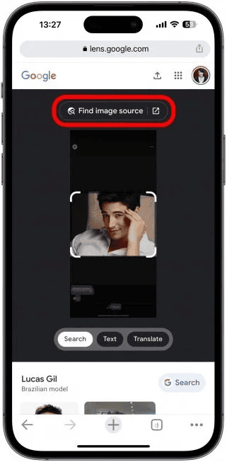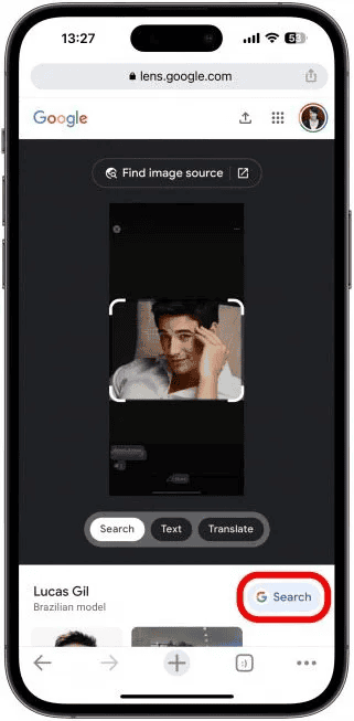 11. Ở cuối màn hình, bạn có thể thấy tên của người trong ảnh và nghề nghiệp của họ, nếu Google có thể nhận dạng họ. Để tìm hiểu thêm về chúng, bạn có thể chạm vào Tìm kiếm.
