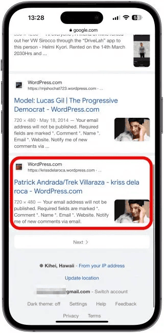 13. Tại đây bạn có thể cuộn qua các nguồn xuất bản hình ảnh này. Trong trường hợp này, hai phần trên cùng không liên quan và phần dưới cùng hiển thị một hồ sơ giả mạo khác sử dụng hình ảnh này với một tên khác.