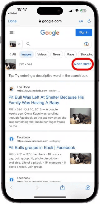 15. Đôi khi, khi bạn nhấn vào “Tìm nguồn hình ảnh” ở bước 12, bạn có thể nhấn vào Kích thước khác để xem hình ảnh của mình được đăng ở các kích thước khác.