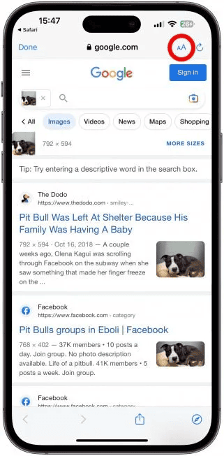 5. Ngoài ra, bạn có thể nhấn vào biểu tượng AA ở đầu màn hình.