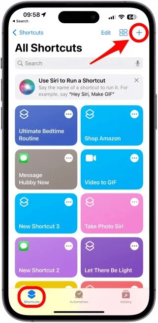 2. Điều hướng đến tab Phím tắt nếu bạn chưa ở đó và nhấn vào biểu tượng + nằm ở góc trên cùng bên phải của màn hình ứng dụng chính.