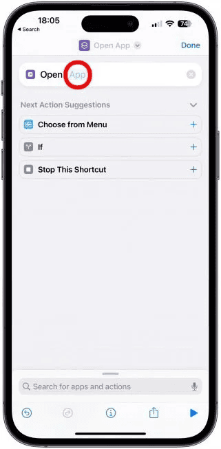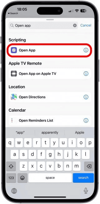 4. Sử dụng thanh tìm kiếm ở đầu màn hình để nhập Open App.