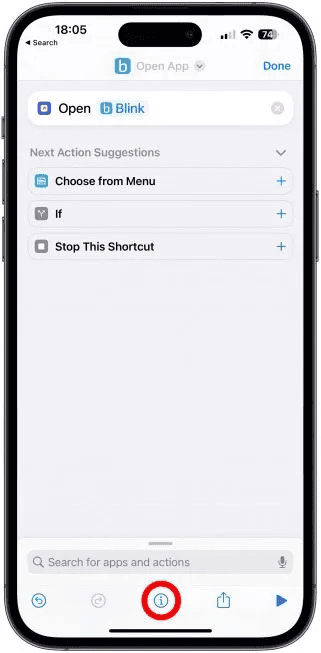 8. Nhấn vào biểu tượng “i” ở cuối màn hình của bạn.