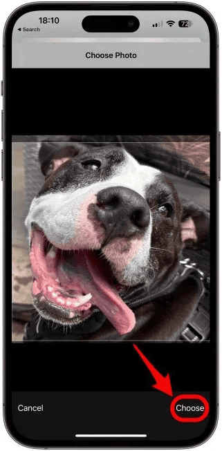 11. Từ menu thả xuống, chọn Chụp ảnhChọn ảnh hoặc Chọn tệp. Đối với ví dụ này, mình sẽ nhấn Chọn Ảnh.