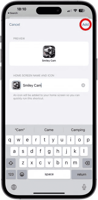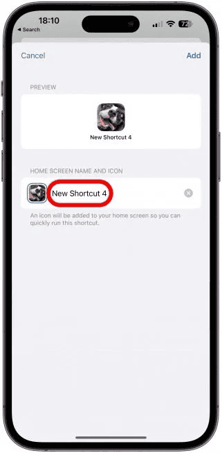 13. Nhấn vào Phím tắt mới để đổi tên ứng dụng. (Bạn có thể sử dụng tên ứng dụng hoặc tạo tên riêng cho ứng dụng.)