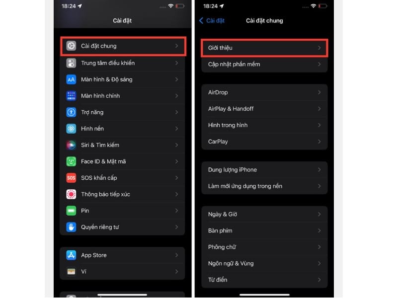Để có thể check được pin đã thay hay chưa, đầu tiên bạn phải cập nhật phần mềm lên iOS 16 mới nhất. Sau đó các bạn vào Cài đặt > Cài đặt chung > Giới thiệu.