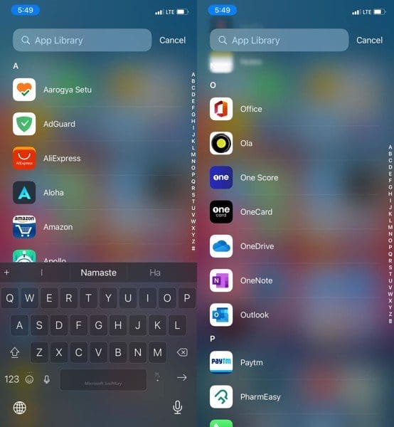 Người dùng cũng có thể vuốt xuống trong menu Thư viện ứng dụng và bắt đầu tìm kiếm ứng dụng từ danh sách ứng dụng cuộn dọc. Ngoài ra, bạn có thể nhấn vào chữ cái và nhảy vào ứng dụng.