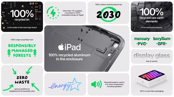 Apple cũng cho biết công ty đã sử dụng nhôm tái chế trên dòng iPad mini mới của mình góp phần bảo vệ môi trường hơn.