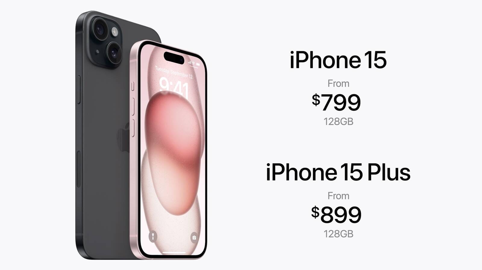 iPhone 15 và ‌iPhone 15 Plus mang đến mức giá bán không đổi ở phiên bản tiêu chuẩn ở 799 USD và đắt hơn 100 USD (899 USD) cho phiên bản Plus. Ngoài ra, mức dung lượng ban đầu của iPhone 15 và iPhone 15 Plus cũng tương đồng với iPhone 14 và iPhone 14 Plus vào năm ngoái là 128GB.