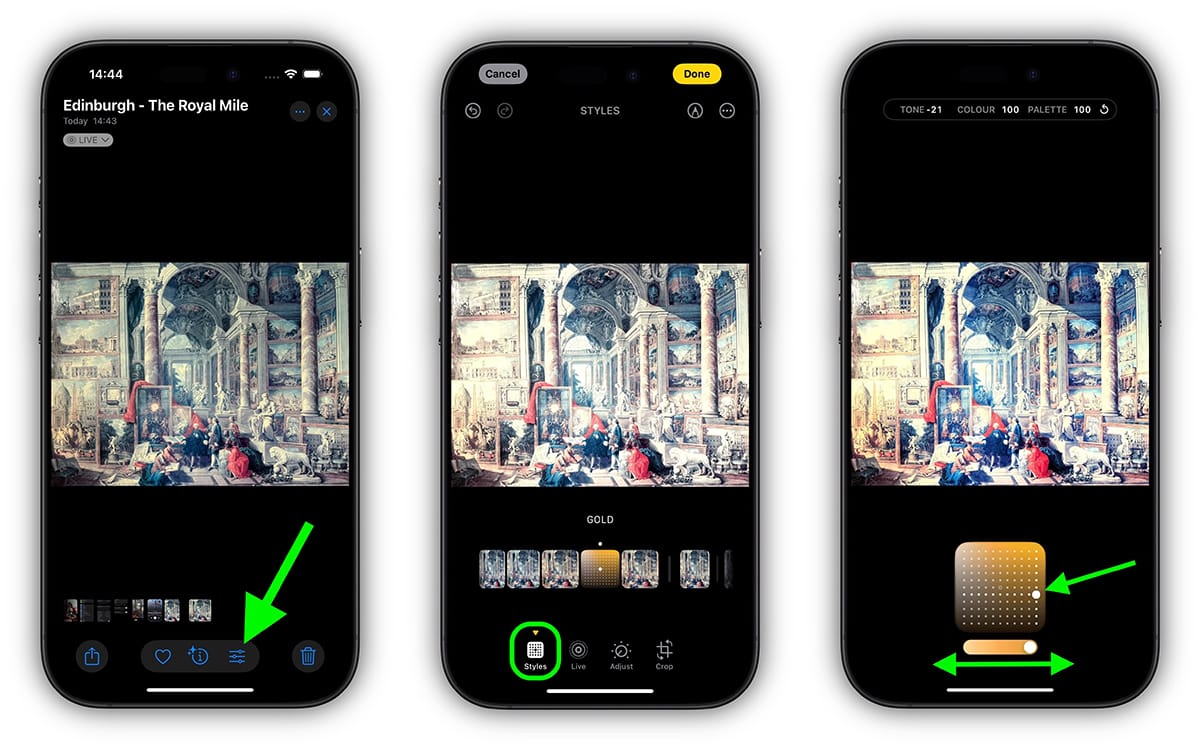 - Chọn một bức ảnh chụp theo phong cách nhiếp ảnh, sau đó chạm vào biểu tượng Chỉnh sửa (trông giống như ba thanh trượt).