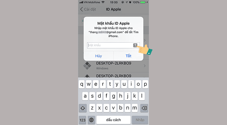 Nếu bạn là chủ nhân của chiếc iPhone và vấn đề duy nhất là bạn quên mật khẩu của chúng thì các bạn có thể lấy lại mật khẩu bằng cách xác thực Email hay bằng số điện thoại.