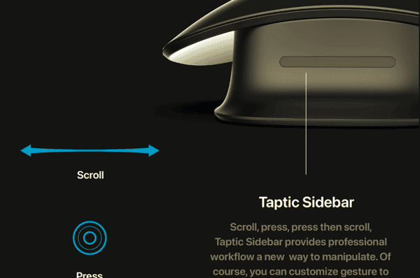 Khái niệm này mở rộng chức năng Magic Mouse với tính năng Magic Trackpad và một Sidebar gắn bên với Taptic Engine tương tự như trên iPhone. Bạn có thể sử dụng ngón tay cái của mình để cuộn và nhấp dễ dàng. Hơn nữa, người dùng có thể tùy chỉnh các cử chỉ để phù hợp với yêu cầu của họ.