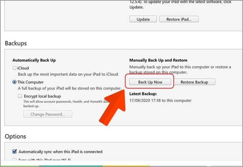 Khi đã dùng các cách khác mà không hiệu quả thì phục hồi lại trong iTunes cũng là một cách có thể sửa lỗi máy sạc không được pin. Phương pháp này nhanh gọn và an toàn hơn là làm qua iCloud, các bước khắc phục lỗi ipad sạc không vào pin như sau: