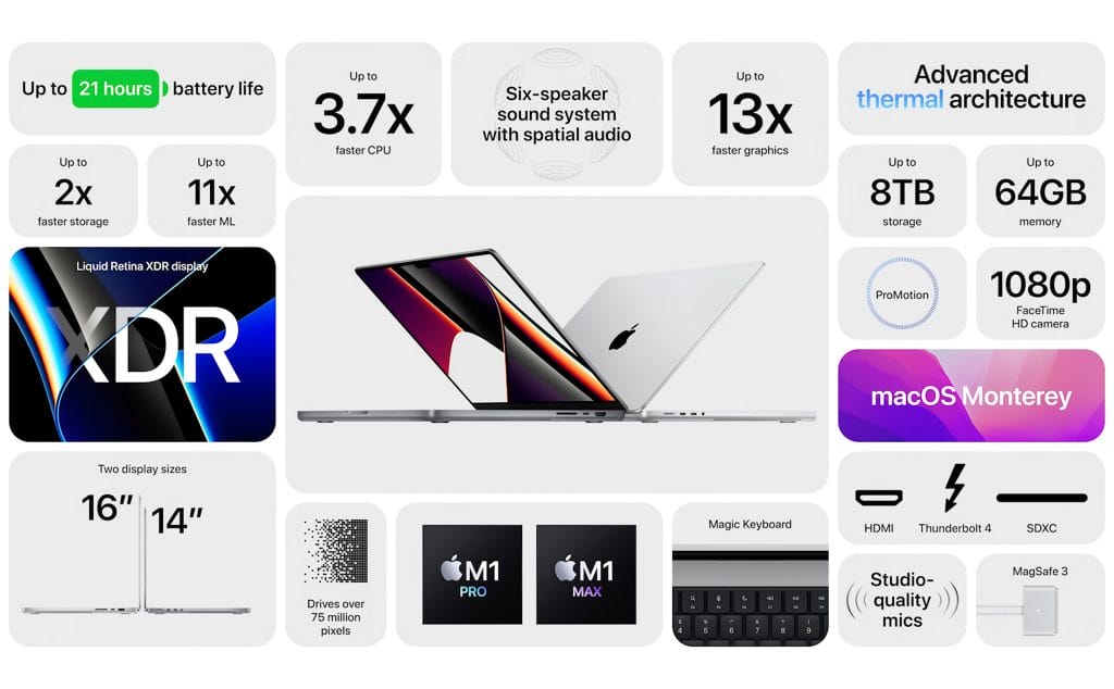 Như vậy đêm qua Apple đã chính thức giới thiệu bộ đôi MacBook Pro 14 inch và MacBook Pro 16 inch trang bị bộ xử lý Apple Silicone với rất nhiều thay đổi và nâng cấp so với phiên bản hiện tại.