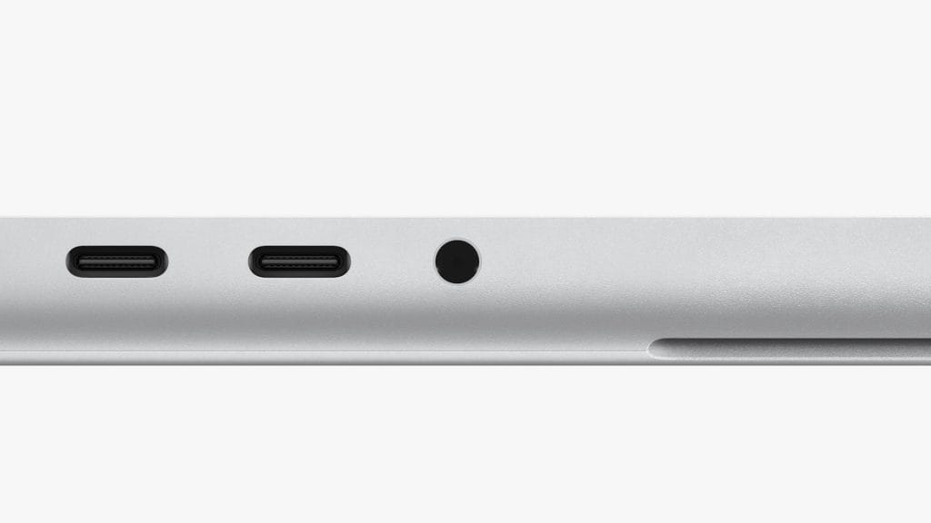 Các cổng kết nối quen thuộc như sạc MagSafe, HDMI, đầu đọc thẻ SD cũng quay lại cùng với 3 cổng Thunderbolt 4.