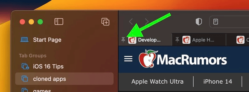 Khi Apple lần đầu tiên giới thiệu tính năng Nhóm tab cho Safari, một nhược điểm của việc sử dụng chúng là bạn không thể ghim các tab vào bên trái của thanh tab. Tuy nhiên, trong Ventura, bây giờ bạn có thể kéo tab của một trang web trong Nhóm tab sang phía ngoài cùng bên trái của thanh tab và nó sẽ được ghim ở đó.