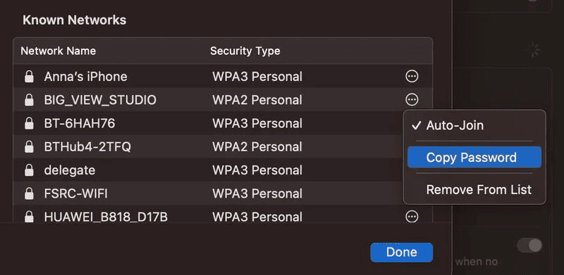 Rất may, Apple đã khắc phục sự cố này trong Ventura bằng cách thêm tùy chọn Sao chép mật khẩu mới tiện lợi trong Cài đặt hệ thống -> Wi-Fi.