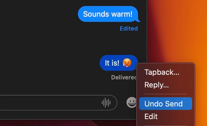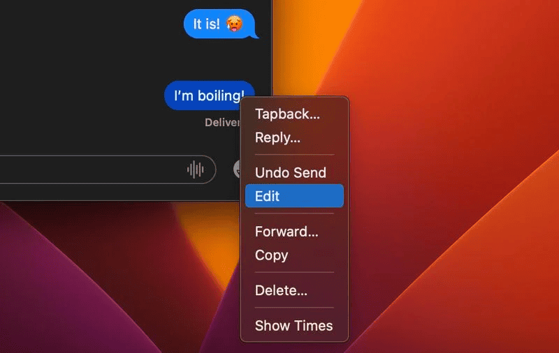 Ứng dụng Tin nhắn đã kế thừa tùy chọn được thấy trong iOS 16 để chỉnh sửa tin nhắn đã gửi. Bạn có thể chỉnh sửa một tin nhắn trong tối đa 15 phút sau khi nó được gửi đi. Chỉ cần nhấp chuột phải vào thư được đề cập, sau đó chọn Chỉnh sửa từ menu ngữ cảnh.