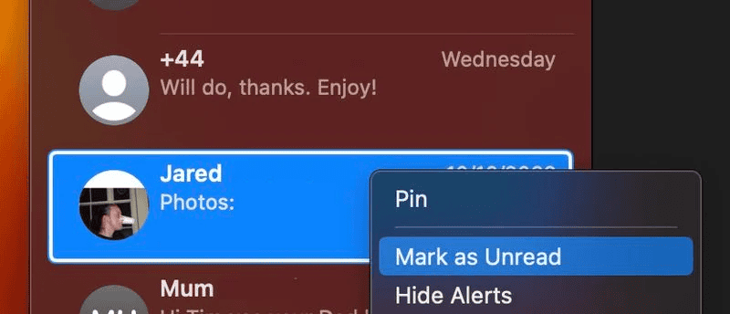 Trong Ventura và iOS 16, Apple cuối cùng đã mang tính năng tương tự vào ứng dụng Tin nhắn của mình, vì vậy bạn có thể đánh dấu tin nhắn SMS hoặc iMessage là mới, do đó trả lại dấu chấm màu xanh lam cho tin nhắn để nhắc bạn quay lại tin nhắn đó.