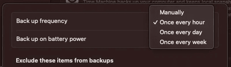 Khi bật sao lưu, một vấn đề nhỏ thường xuyên xảy ra trong các phiên bản macOS trước đó là bạn không thể thay đổi tần suất sao lưu so với mặc định hàng giờ.