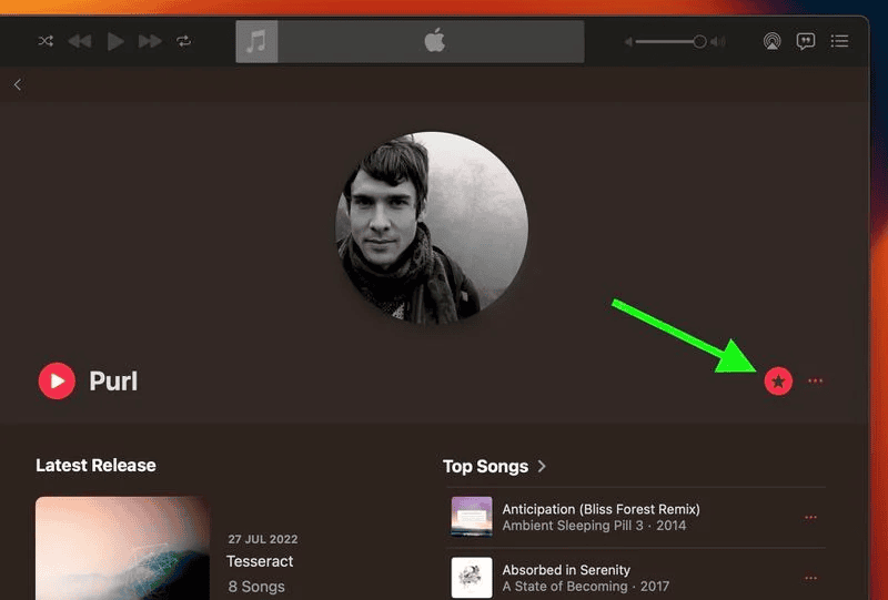 Trong ứng dụng Âm nhạc, giờ đây bạn có thể thêm nghệ sĩ vào danh sách “Nghệ sĩ được yêu thích” bằng cách điều hướng đến hồ sơ nghệ sĩ và nhấp vào nút dấu sao mới trên trang của họ.